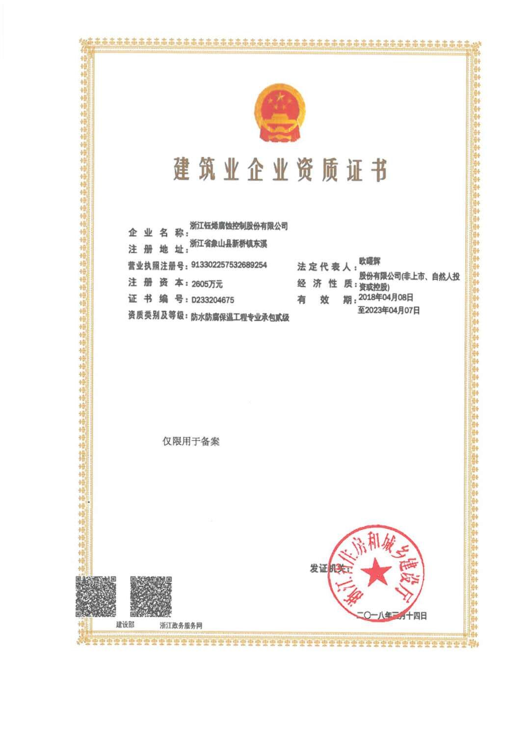 7.防水防腐保溫工程專業(yè)承包二級