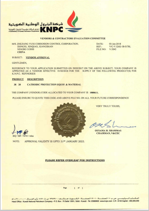科威特國家石油公司Kuwait National Petroleum Company(KNPC)認證。