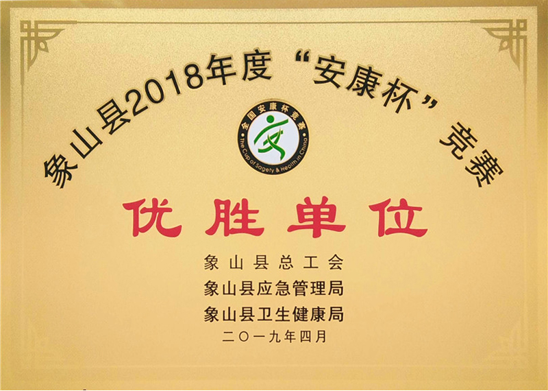 象山縣2018年度“安康杯”競賽優(yōu)勝單位和先進個人;