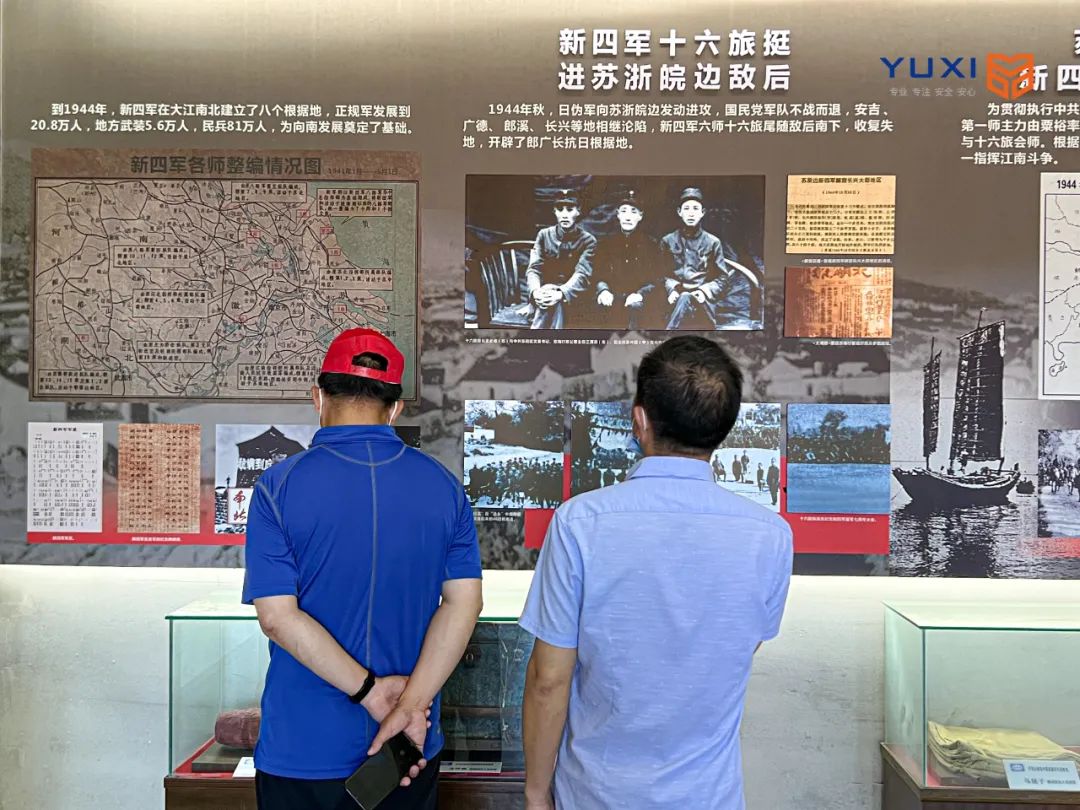 全體黨員懷著對革命先烈的崇敬來到新四軍蘇浙軍區(qū)舊址,推開歷史的大門,步入烈士紀(jì)念館。莊嚴(yán)肅穆的展區(qū)內(nèi)滿載著革命歷史的文物和珍貴照片,再現(xiàn)了那一段浴血奮戰(zhàn)的烽火抗戰(zhàn)故事。粟裕、葉飛、劉先勝、鐘期光等將軍帶領(lǐng)革命將士立下的卓著戰(zhàn)功,以及新四軍和百姓的濃濃魚水情:吃菜要吃白菜心,當(dāng)兵要當(dāng)新四軍。