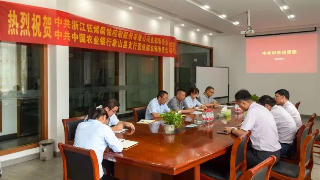 6月30日下午2:00,為實(shí)現(xiàn)黨組織優(yōu)勢互補(bǔ),黨建促進(jìn)業(yè)務(wù),充分發(fā)揮公司黨組織和廣大黨員推動發(fā)展、凝聚人心、促進(jìn)和諧的作用,努力構(gòu)建“資源共享、優(yōu)勢互補(bǔ)、互相促進(jìn)、共同提高”的黨建工作新格局,在鎮(zhèn)政府的大力支持下,中共浙江鈺烯腐蝕控制股份有限公司黨支部與中國農(nóng)業(yè)銀行象山縣支行營業(yè)部黨支部在鈺烯新橋工廠會議室, 聯(lián)合開展“黨建共建、發(fā)揮合力、共贏未來”結(jié)對活動。