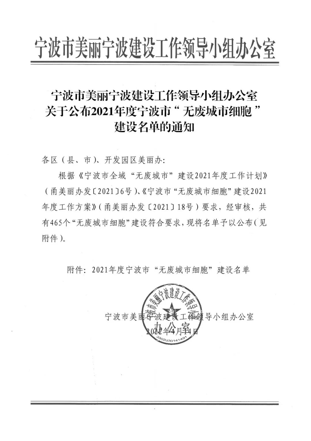 日前,寧波市公布了2021年“無(wú)廢城市細(xì)胞”建設(shè)名單,鈺烯入選寧波市首批“無(wú)廢工廠”名單。成為寧波市“無(wú)廢細(xì)胞”之一!
