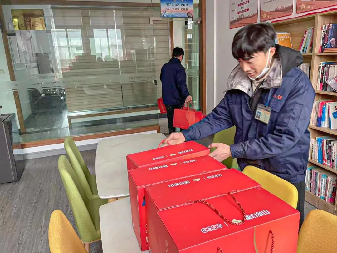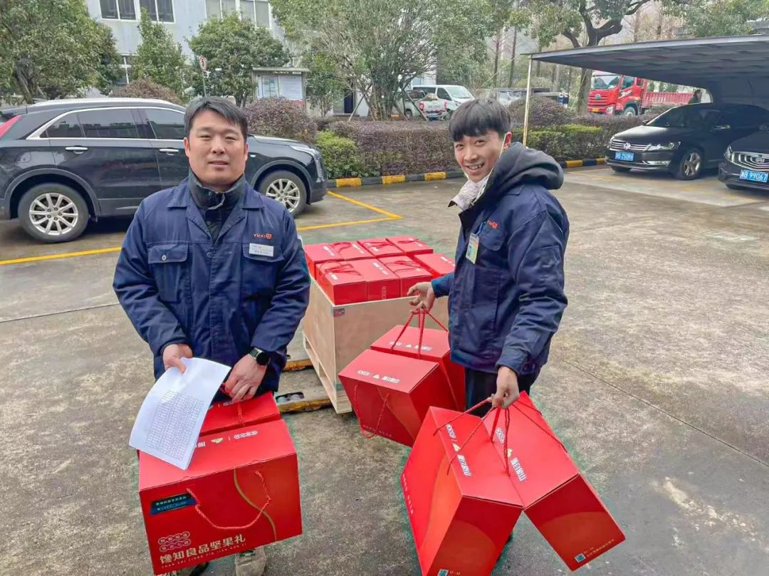 (鈺烯各廠區(qū)同事領(lǐng)年貨圖)
