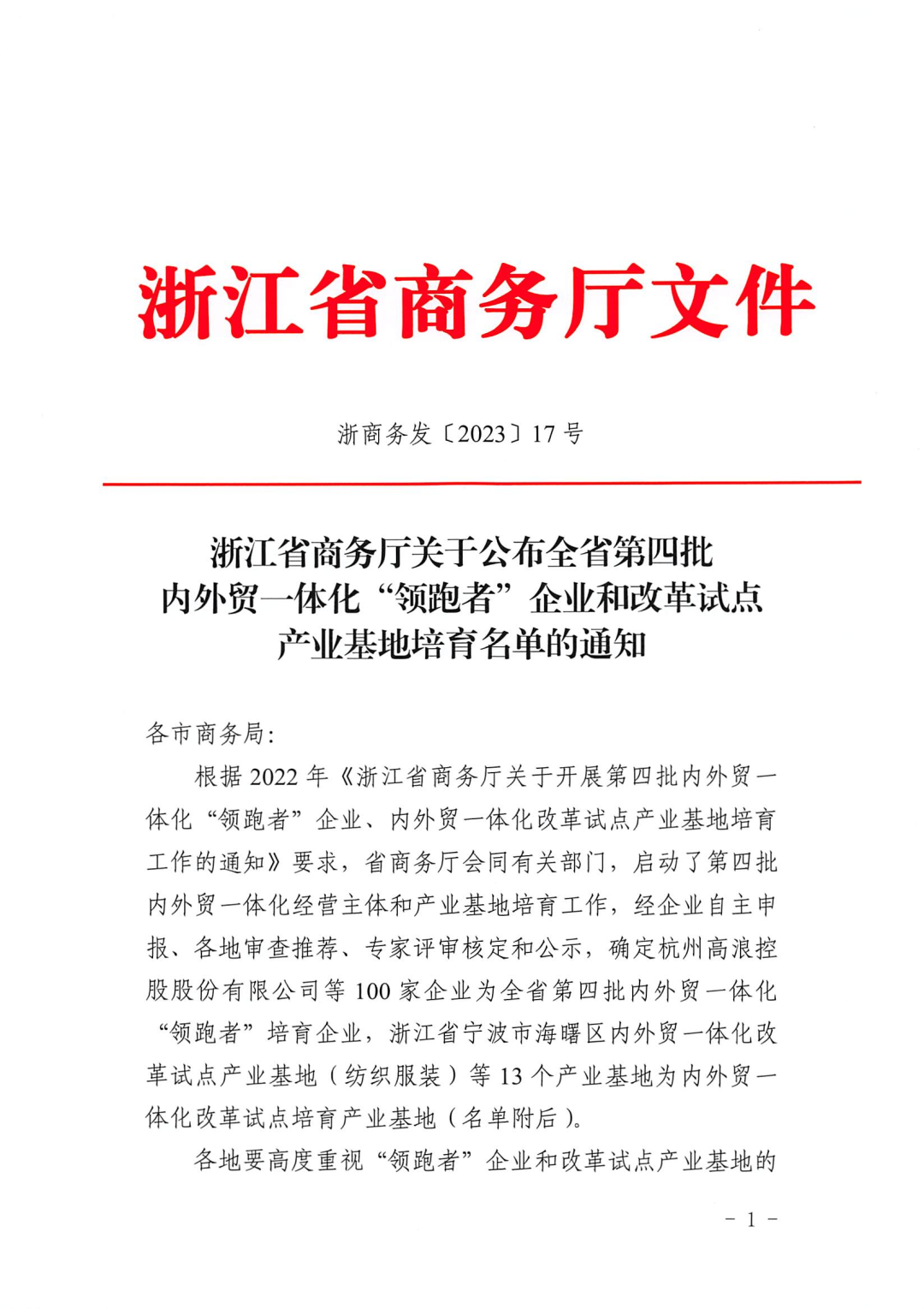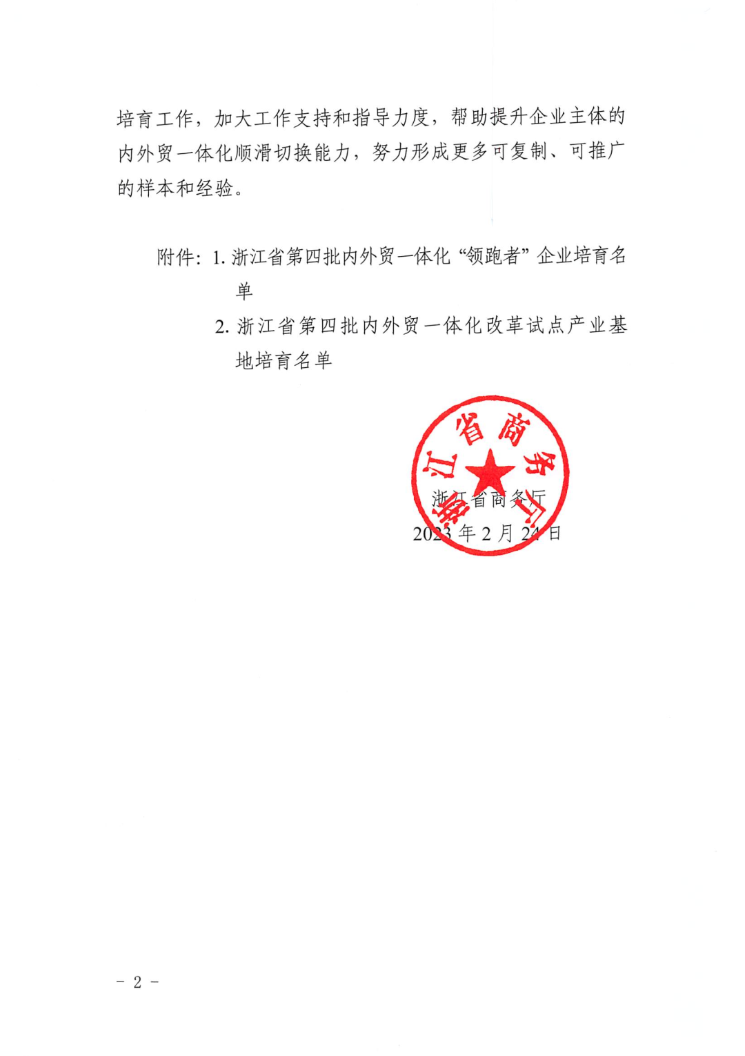 近日,浙江省商務廳會同有關部門,啟動了第四批內外貿一體化經營主體和產業(yè)基地培育工作,經企業(yè)自主申報、各地審查推薦、專家評審核定和公示,確定浙江鈺烯腐蝕控制股份有限公司等100家企業(yè)為全省第四批內外貿一體化“領跑者”培育企業(yè)。