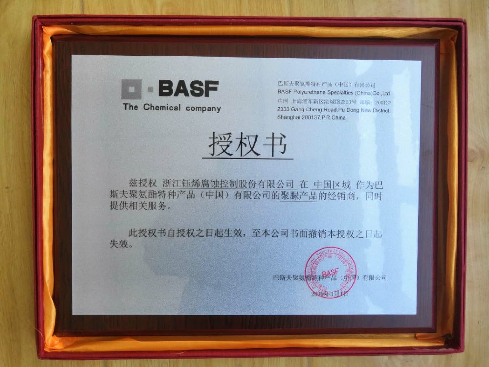 浙江鈺烯獲準(zhǔn)在中國區(qū)域作為巴斯夫聚氨酯特種產(chǎn)品(中國)有限公司的聚脲產(chǎn)品經(jīng)銷商,同時提供相關(guān)服務(wù)。