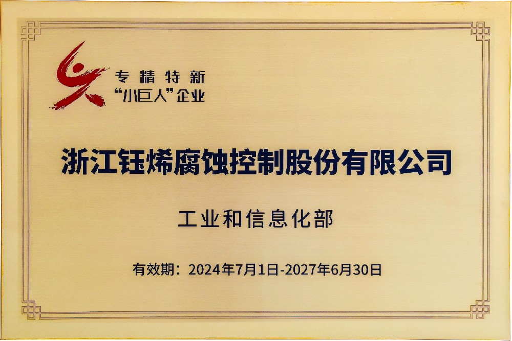 9月2日,浙江省經(jīng)濟(jì)和信息化廳發(fā)布《關(guān)于浙江省第六批專精特新“小巨人”企業(yè)和第三批專精特新“小巨人”復(fù)核通過企業(yè)名單的公示》,浙江鈺烯腐蝕控制股份有限公司復(fù)核通過第三批國(guó)家級(jí)專精特新“小巨人”企業(yè)。此次通過復(fù)核,意味著鈺烯股份在專業(yè)化、精細(xì)化、特色化、創(chuàng)新能力方面的表現(xiàn)再···