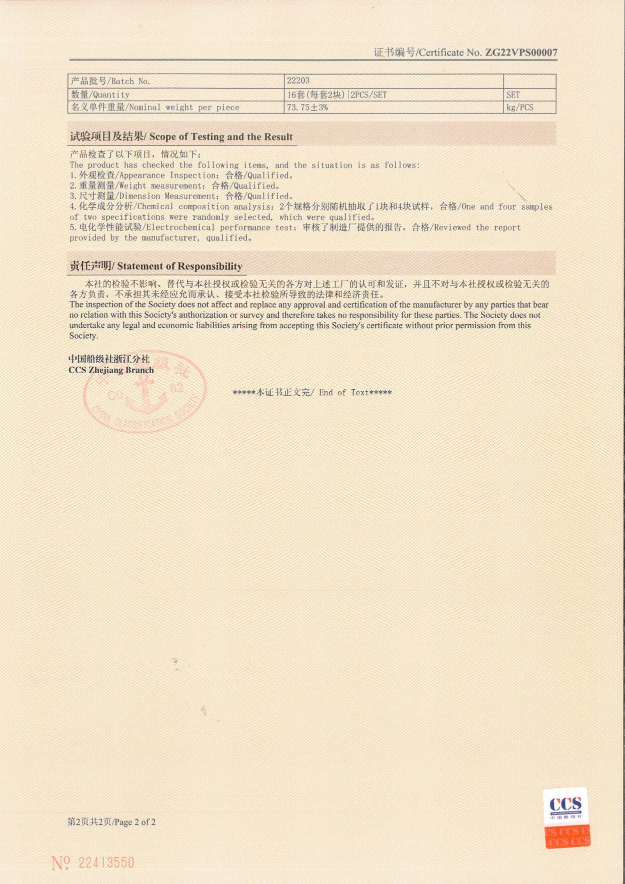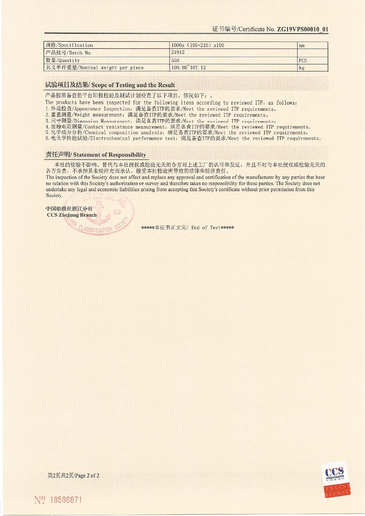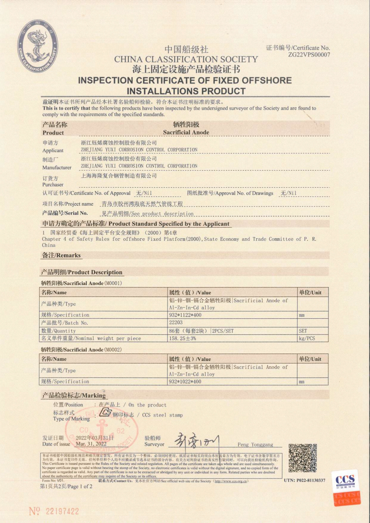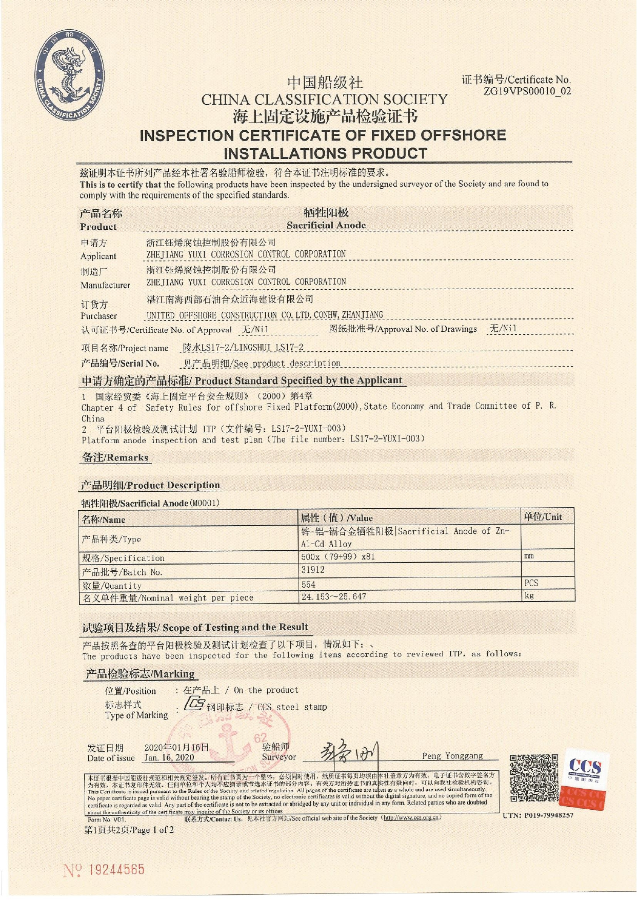 中國船級社產品——海上固定設施產品檢驗證書(客戶湛江)